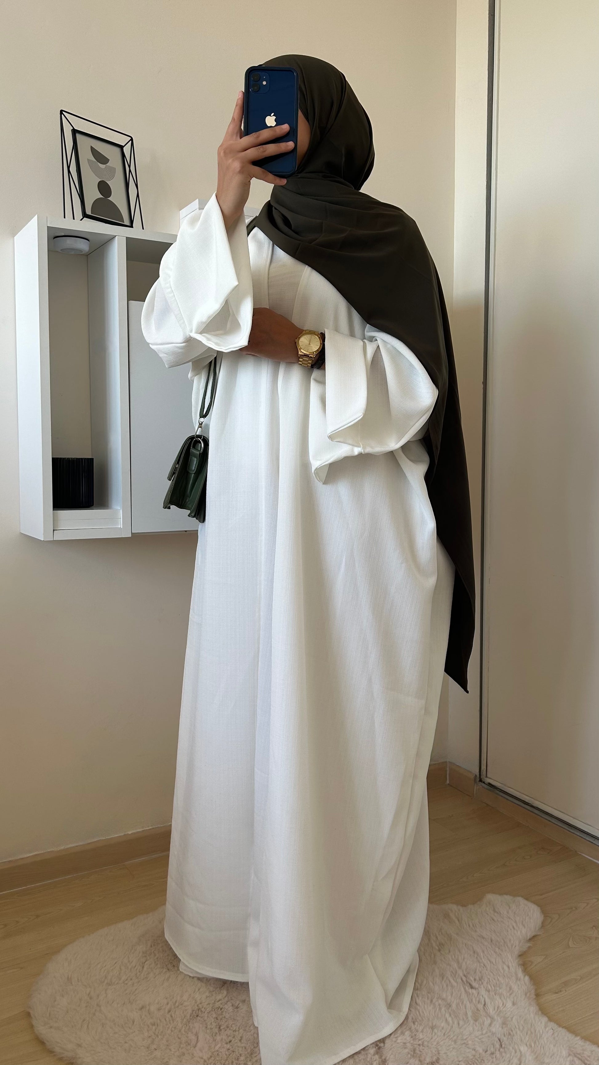 Ensemble kimono et sous-robe en blanc.Taille unique, idéal pour les tailles 36 à 42. Le mannequin mesure 1m61.